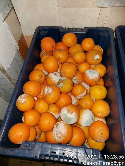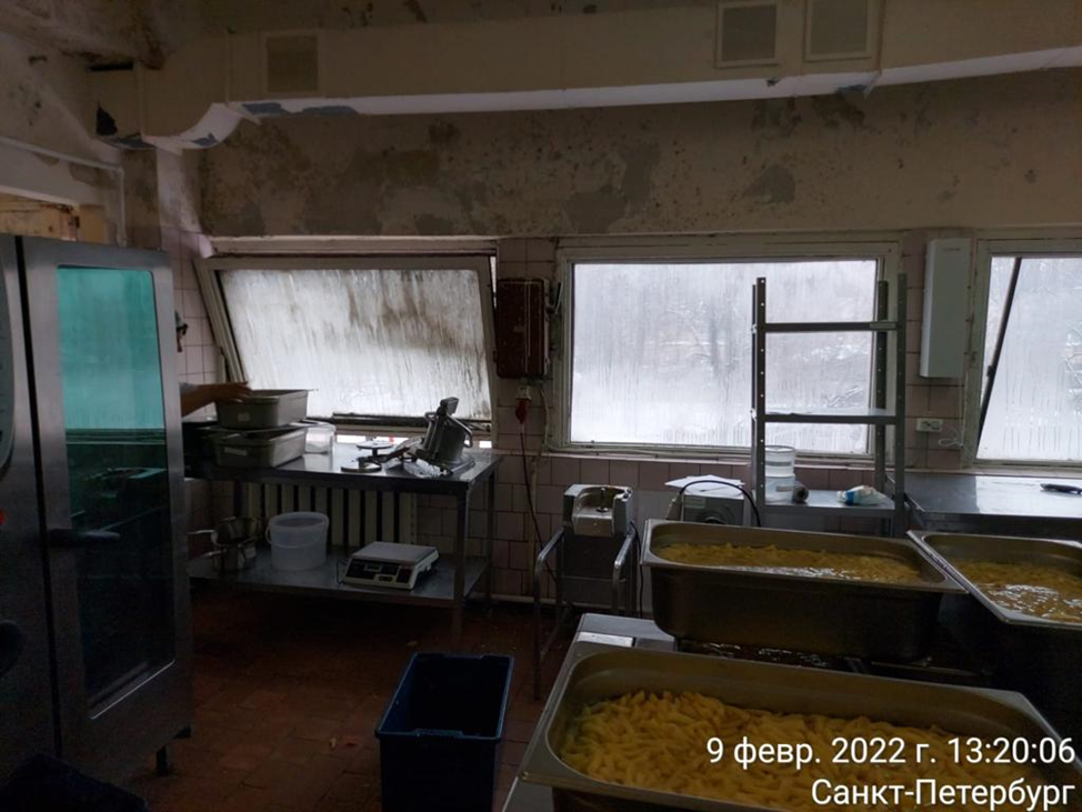 1.1.2. Пищеблок находился в неудовлетворительном санитарном состоянии. Помещения давно требуют ремонта. На складе пищеблока обнаружены продукты, непригодные к употреблению. Во время проведения обследования кроме работников Комбината Василеостровского района в производственных помещениях находились посторонние лица, осуществляющие мытье полов и чистку овощей, трудовые отношения с которыми КСП Василеостровского района не оформлены.